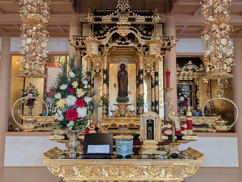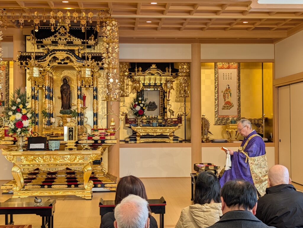 僧侶の読経の中、故人様の法名・お名前をご本尊前に奉納いたしましたことをご報告します。